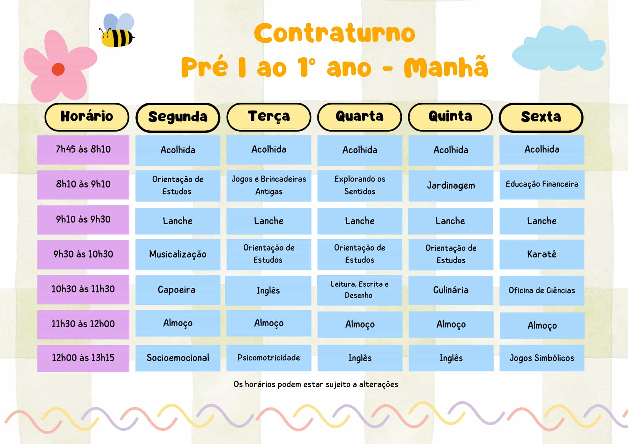 Oficinas variadas e atividades diversas são oferecidas no turno contrário às aulas, da Ed. Infantil ao 5º ano / Fund. AI.