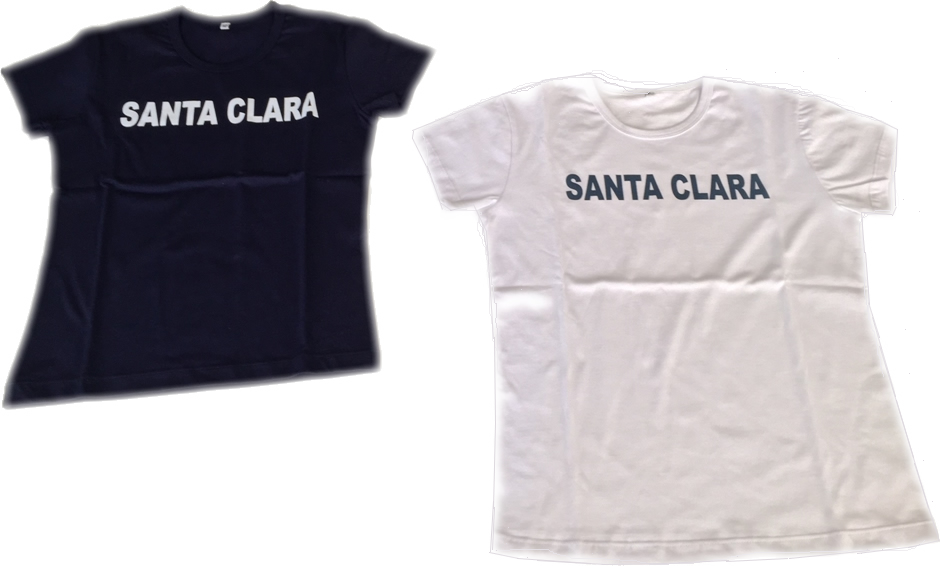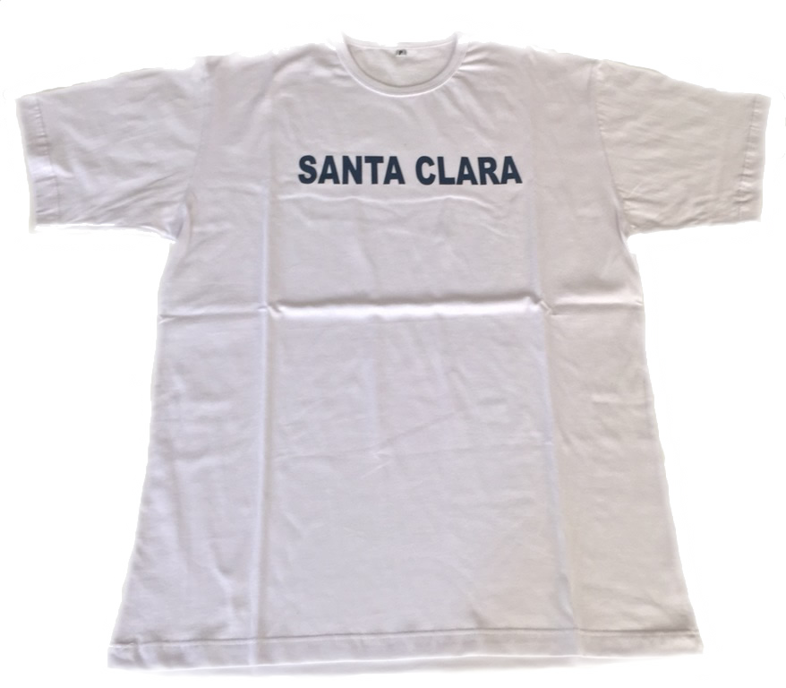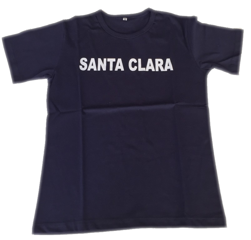 - Camiseta (malha) - Tamanho: P-M-G - Cores: Branca e Azul Marinho